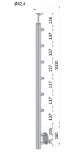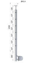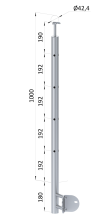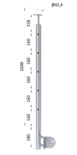 Sloupky s bočním kotvením z broušené nerezi AISI 304 o průměru 42,4 mm, síla stěny 2 mm. Součástí dodávky je příruba pro boční kotvení, spodní krytka, pevný držák madla a u sloupků s úchytkami držáky vodorovné výplně nebo držáky skla. Výrobek na míru - zboží nelze vrátit.