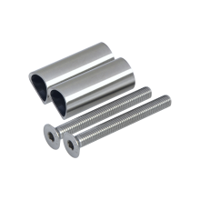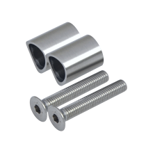 Různé druhy nerezových úchytů na boční kotvení sloupků, desky na boční kotvení a přechody mezi sloupkem a kotevní deskou, materiál broušená nerez, leštěná nerez i nerez AISI316.