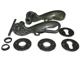 Kované dveřní kliky nebo oblíbené cenově výhodné sety klik a štítků ke klice a k zámku. Součástí dodávky klik je i hřídel kliky.