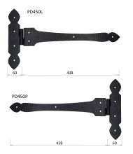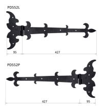 Ozdobné pásové rustikální kování s nátěrem v černé barvě, ozdobné závěsy a panty na výrobu a renovaci oken, dveří, vrat, branek a bran.