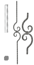 Kované tyče s ozdobnými prvky - vybírat můžete z čtyřhranných tyčí z hladkého, zdobeného nebo válcovaného profilu, ale i z tyčí s kulatým profilem ø 12 mm nebo 14 mm, jedinečného vzhledu docílíte použitím ornamentových tyčí. Vše dodáváme bez povrchové úpravy.
