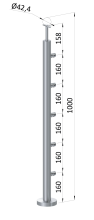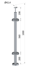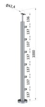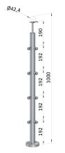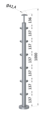 Sloupky zábradlí z leštěné nerezi K320/AISI 304, průměr sloupku je 42,4 mm, síla stěny 2 mm. Jako madlo lze použít dřevěné nebo nerezové madlo s průměrem 42 mm. Nerezové sloupky z níže uvedené nabídky jsou určené pro montáž na rovnou plochu, např. terasy, balkony, rovné zábradlí. Sloupky pro šikmé plochy (zábradlí schodiště apod.) - cena na dotaz. Výrobek na míru - zboží nelze vrátit.