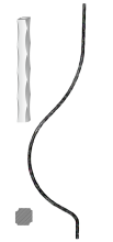 Ozdobné kované tvarované tyče z hladké nebo válcované oceli vhodné na výrobu zábradlí, plotů, balkonů apod., délka 900 - 1000 mm, bez povrchové úpravy.