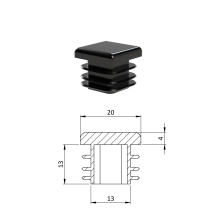 Čtvercové plastové zátky profilů dodáváme v barvě černé RAL9005, v barvě antracit RAL7016, šedá RAL7040 a bílá RAL9010. Materiál - polyetylén.