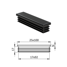 Obdélníkové plastové zátky profilů dodáváme standardně v barvě černé RAL9005, na dotaz je barva antracit RAL7016, šedá RAL7040 a bílá RAL9010. Materiál - polyetylén.