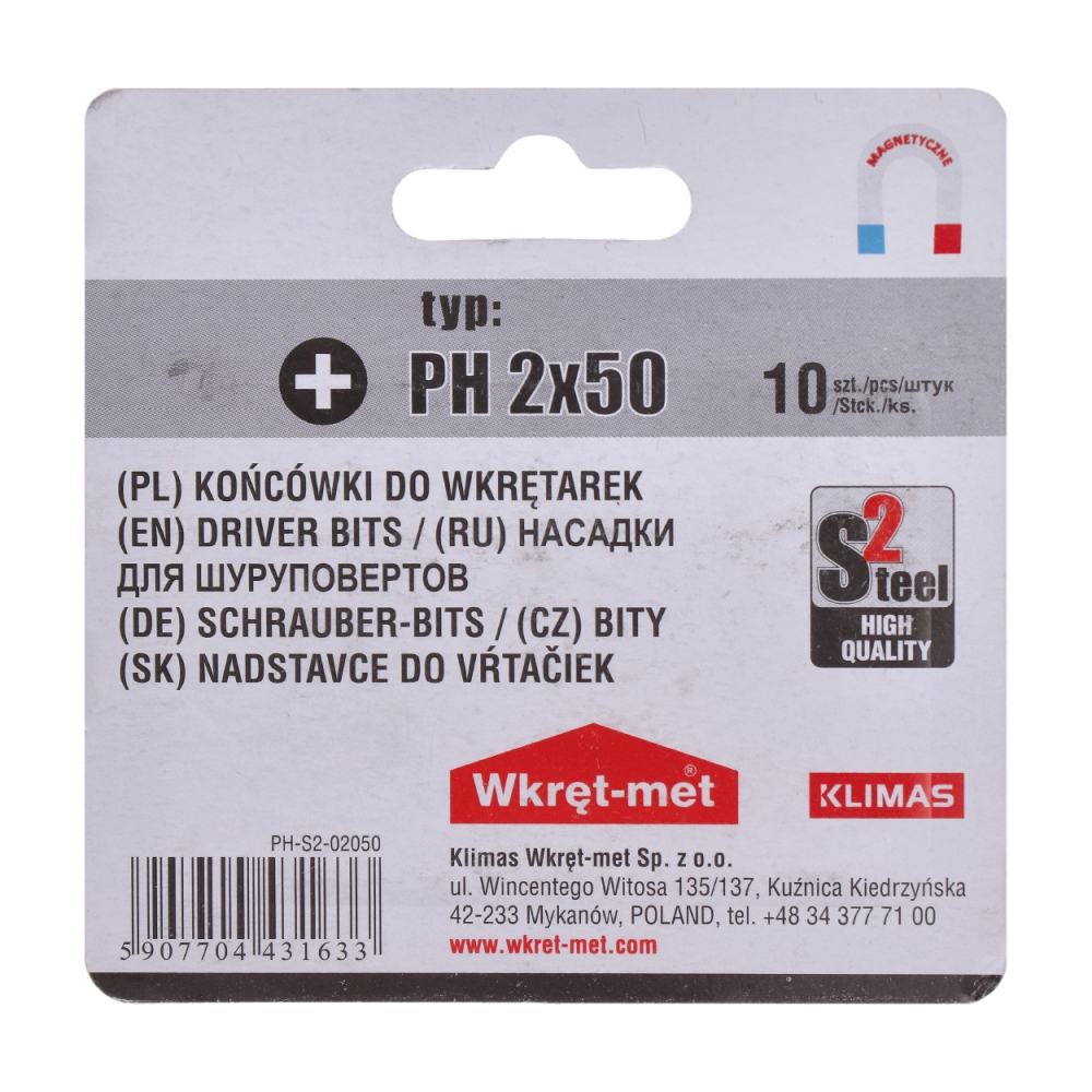 10 dílný blistr bitů PH2, délka 50 mm.