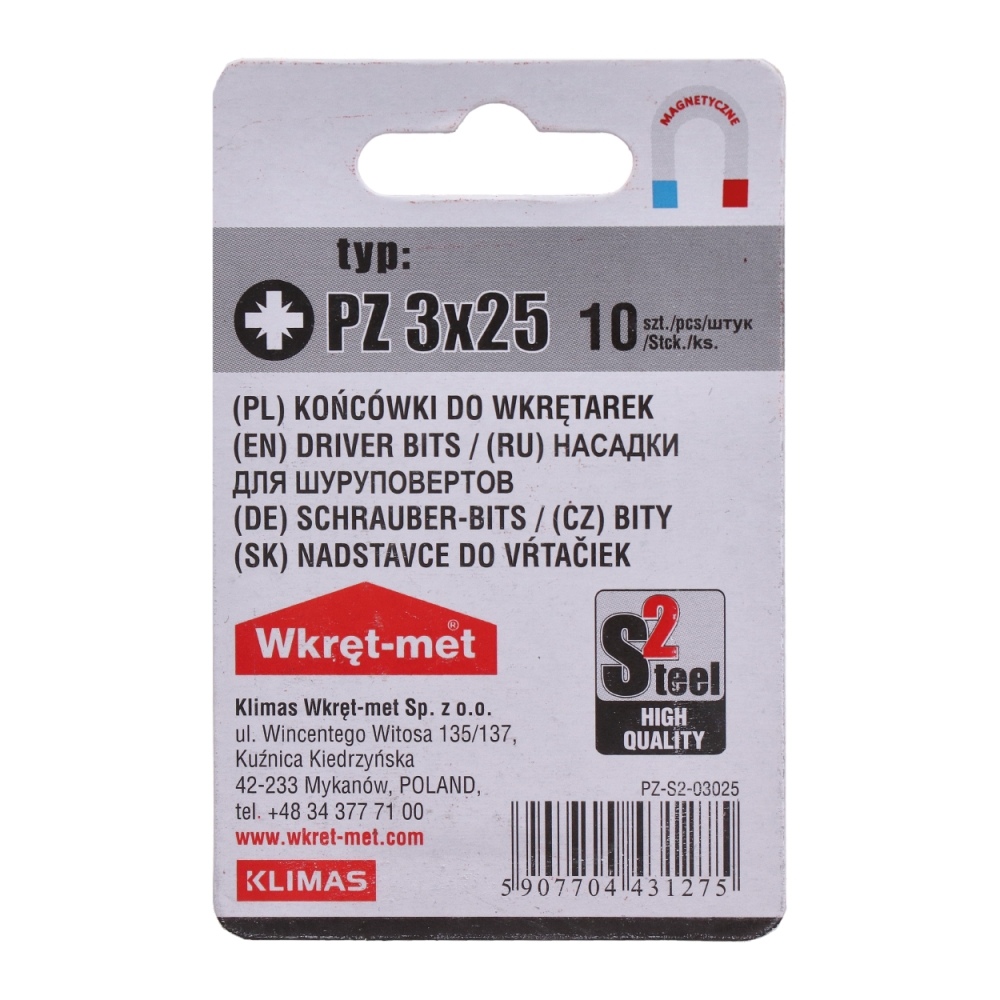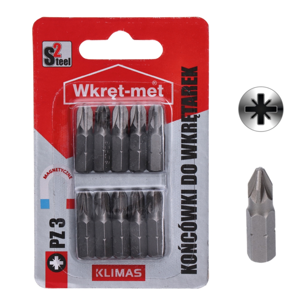 10 dílný blistr bitů PZ3, délka 25 mm.