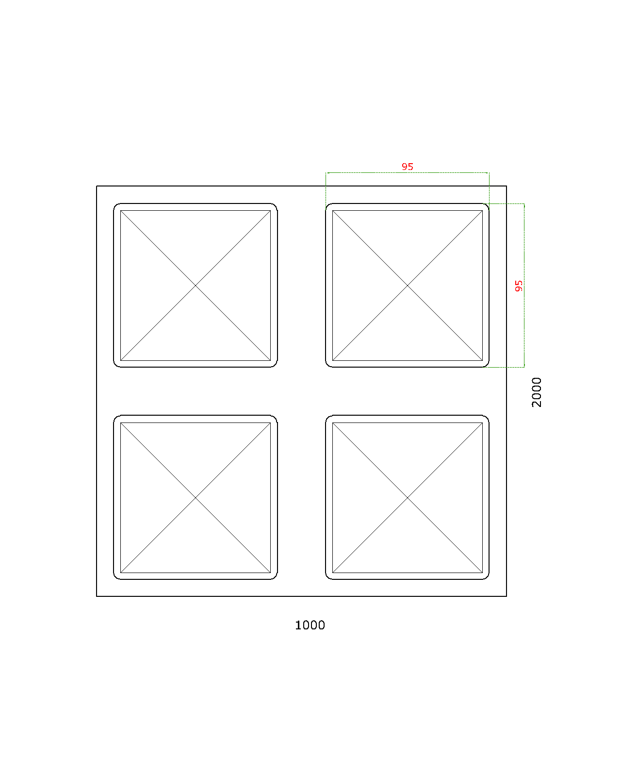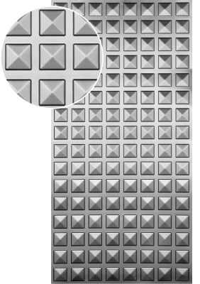 I PFEZ1/12 - černý lisovaný plech 1000 x 2000 x 1,2 mm (skutečný rozměr 950 x 1990 x 1,2 mm, š x v x tl.), vzor čtverec 95 x 95 mm s 3D efektem. Bez povrchové úpravy. Uvedená cena je za 1 ks.