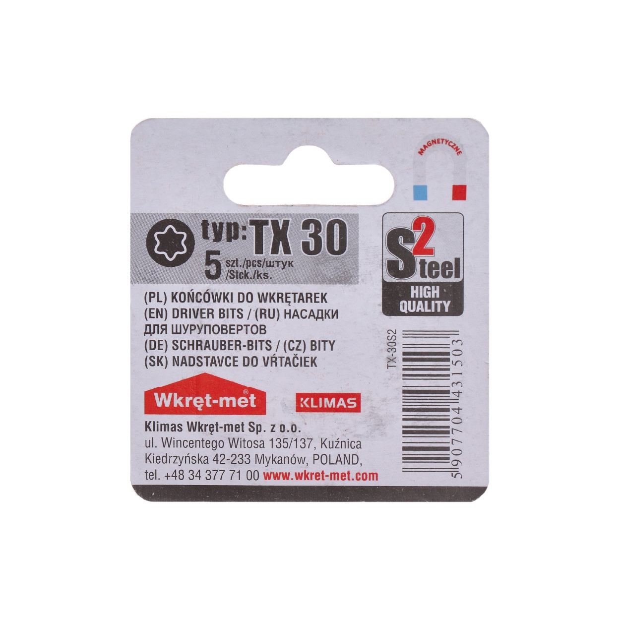5 dílný blistr bitů TX-30, délka 25 mm.
