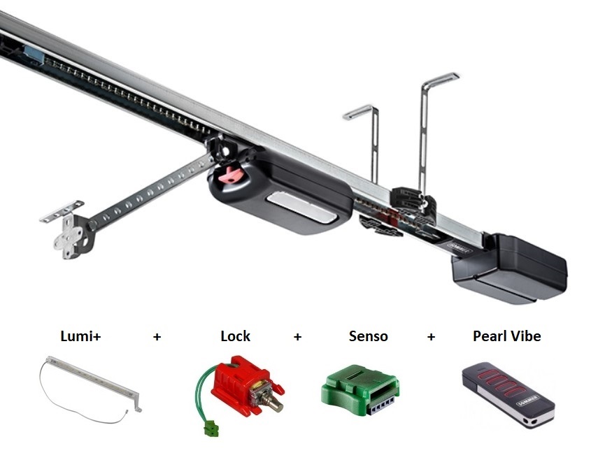 Automatický pohon Base+ 600 je vysoce kvalitní výrobek od německého výrobce, firmy SOMMER. Pohon nové generace se odlišuje svou jedinečnou technologií - pohyblivým motorem na jednostranně napnutém řetězu, který je nyní ještě rychlejší, bezpečnější a inteligentnější. Řídící jednotka je na dráze pohonu, LED osvětlení na vozíku. K pohonu je standardně dodáván předprogramovaný 4-kanálový dálkový ovladač Pearl. Kódování SOMloq2.