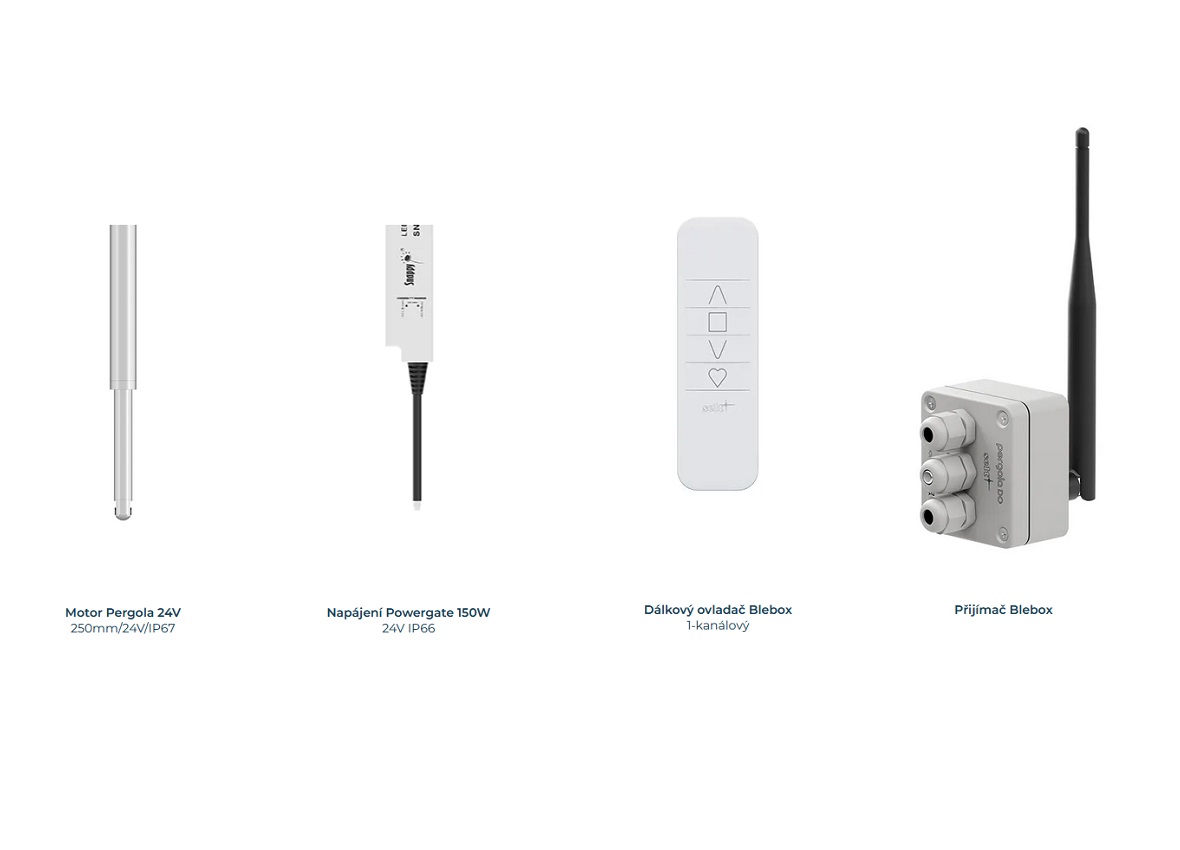 Pergola je dostupná pouze ve volně stojícím provedení, instalace je velmi jednoduchá. Ploché lamely usnadňují odtok vody a v zavřeném stavu vytvářejí rovný povrch. Systém SB350 má dva odtokové žlaby, každý se dvěma odtokovými otvory, přes které voda odtéká přímo do sloupku. Otáčení lamel je poháněno elektromotorem a v nosnících je volné rozložení ovládacích prvků. Součástí balení je dálkové ovládání, ovládání je možné také prostřednictvím aplikace. Instalace a servis se jednoduše provádí v horní části nosníků.