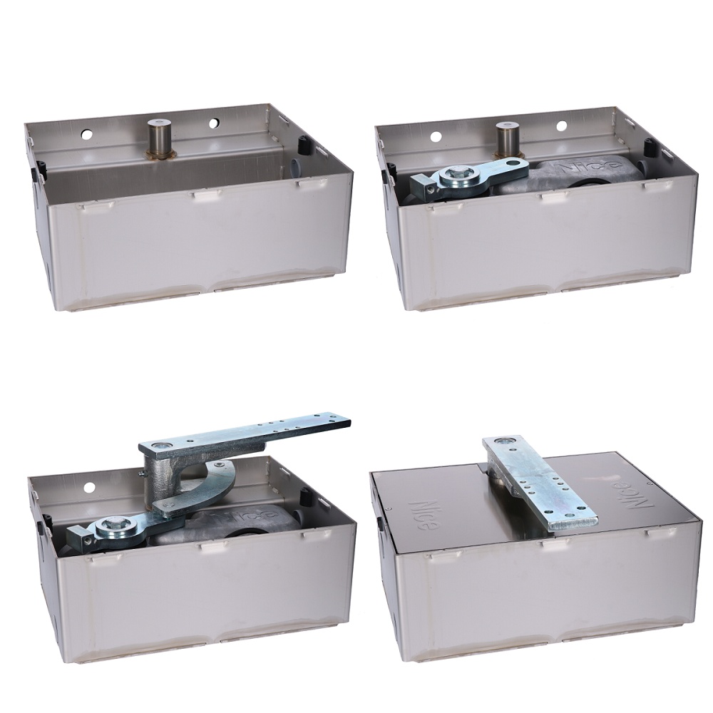 BMBOXI - základová nerezová schránka se zabudovanou mechanickou zarážkou při otevření pro pohon BM5024.