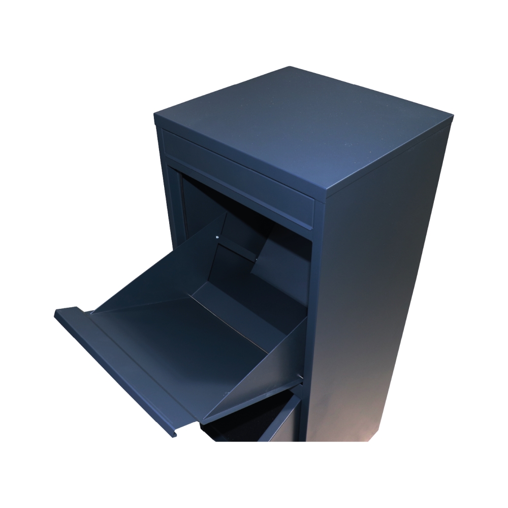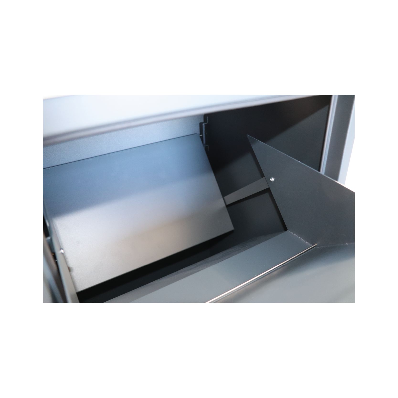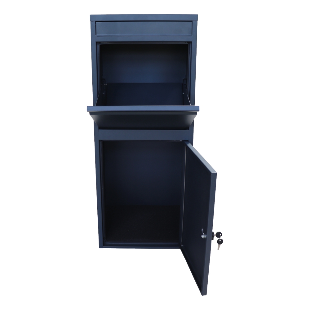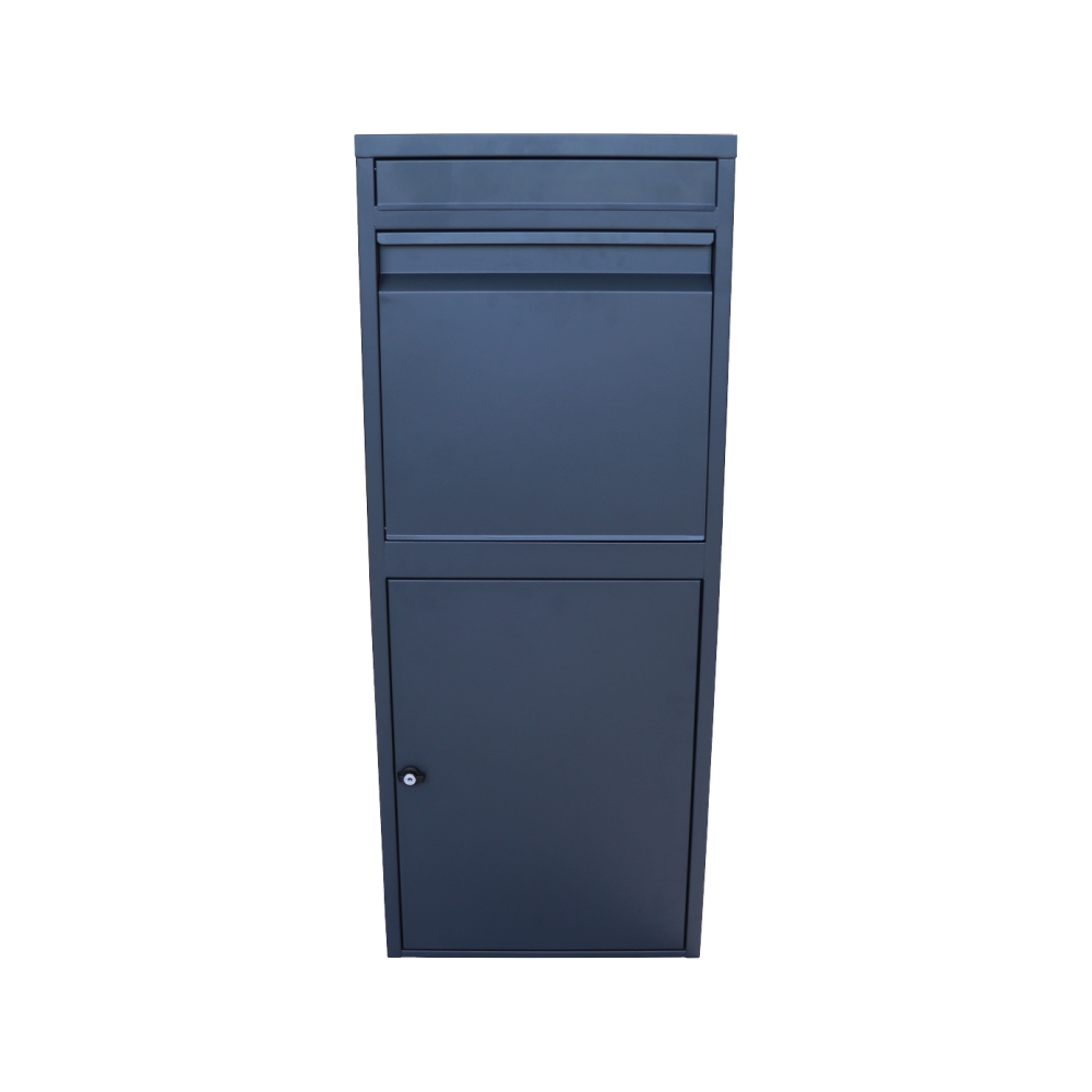 Privátní "parcel box" - schránka na balíky s přepadovou lištou na ochranu balíků, rozměr 410 x 385 x 1020 mm, tl. mat. 0,8 mm, velikost balíku až 320 x 300 x 260 mm, barva - antracit RAL 7016.