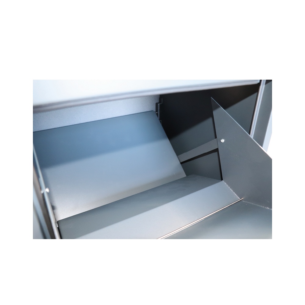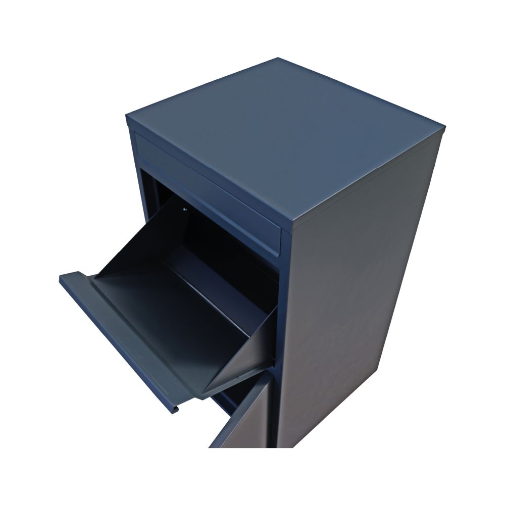 Privátní "parcel box" - schránka na balíky s přepadovou lištou na ochranu balíků, rozměr 410 x 385 x 720 mm, tl. mat. 0,8 mm, velikost balíku až 320 x 300 x 180 mm, barva - antracit RAL 7016.