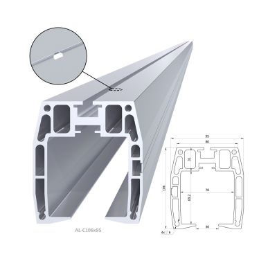 Hliníkový C profil 95 x 106 mm pro nesenou bránu, materiál přírodní hliník bez povrchové úpravy. Standardní délka 6 m, ostatní délky 3, 2 a 1 m jsou zboží vyrobené na míru (nelze vrátit). Předděrovaný - můžete jej svařovat, ale díky předpřipraveným otvorům je nyní možné i snadné přišroubování. Tato úprava přináší více flexibility a usnadňuje montáž.