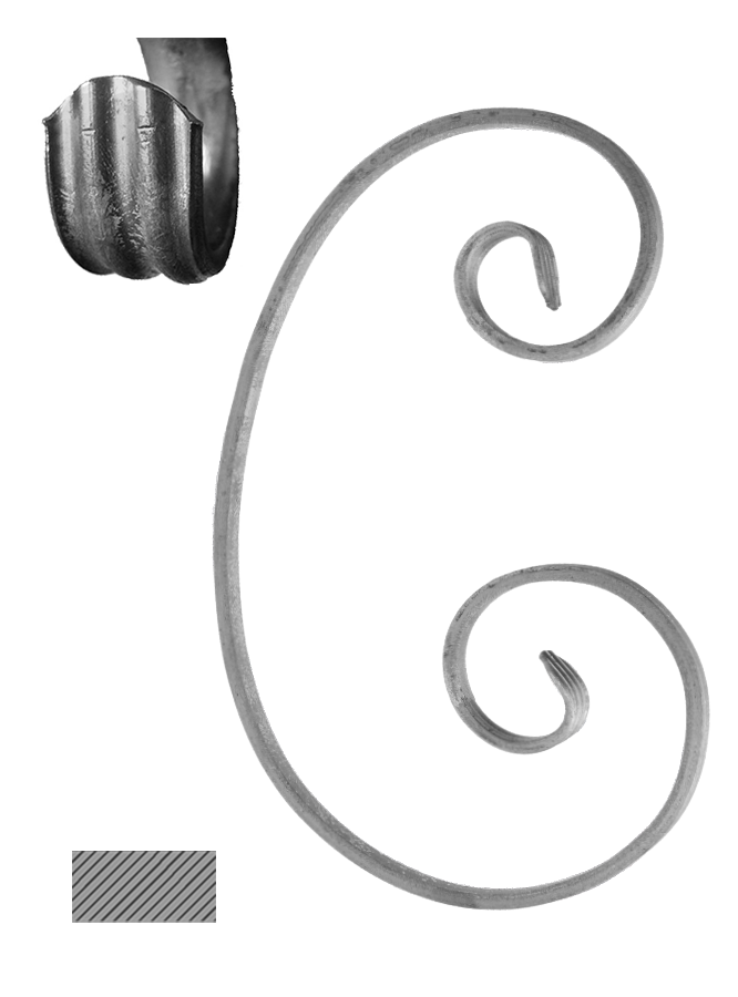 EUROBYT-CB / KOVANÉ VÝROBKY A POLOTOVARY / Kroucené prvky - céčka, eska, šišky ... / Kovaná céčka / céčko kované KC008AH, široké rozkování