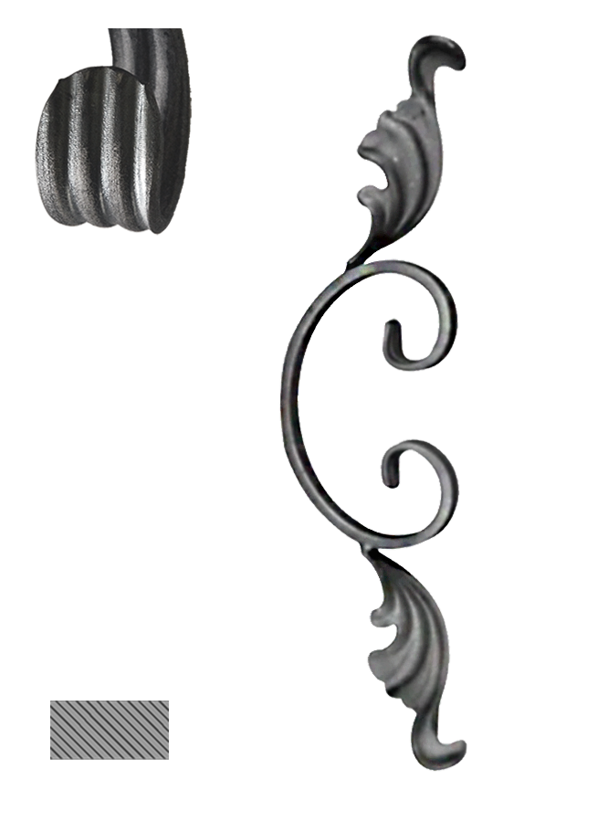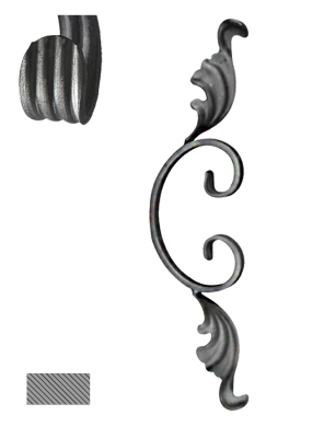 KC090 - céčko kované s listy (kód 1261), rozměr 320 x 80 mm, hladký profil 12 x 6 mm. ...Ukaž celý popis >