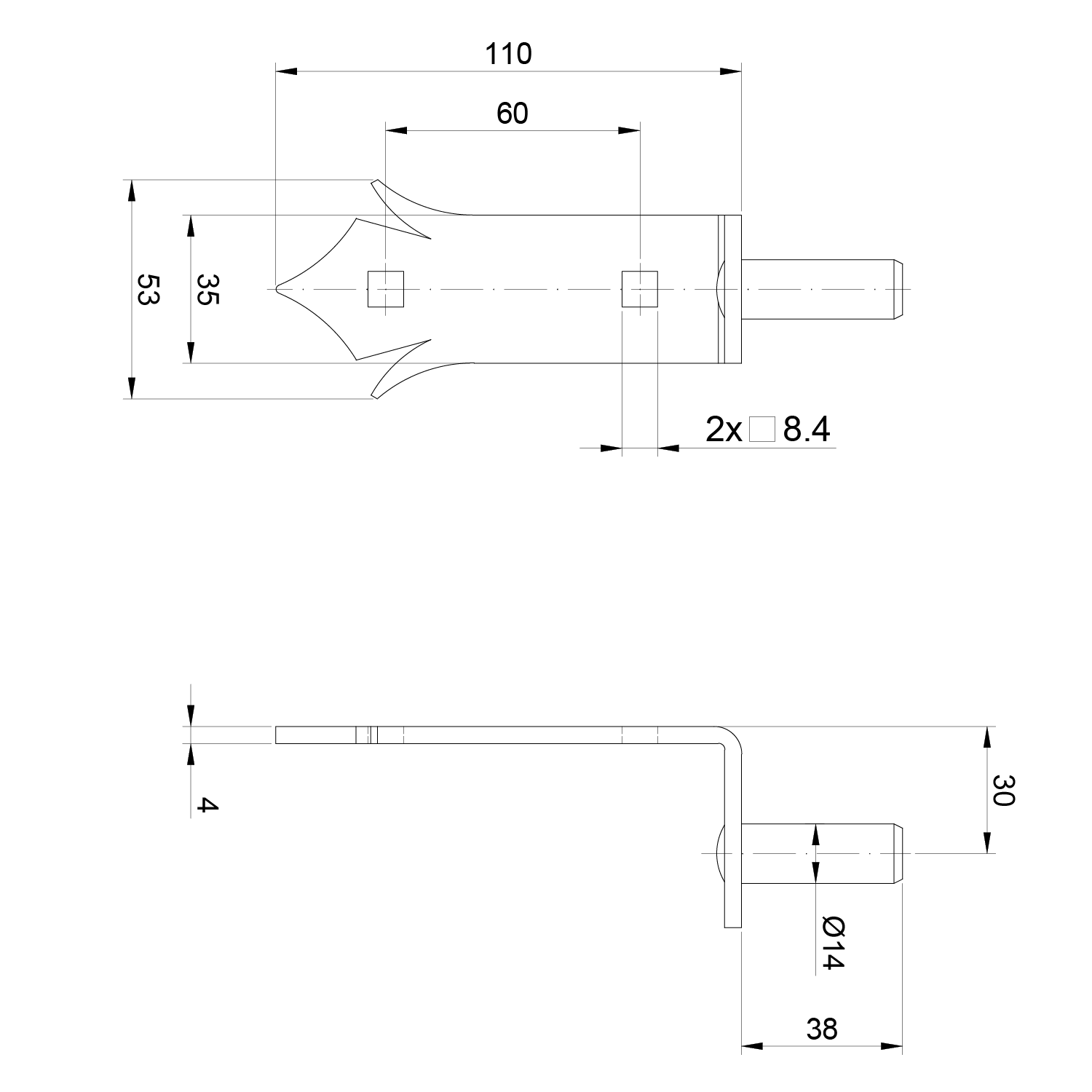 PD265 - zdobený čep pro pásový závěs, rozměr 150 x 35 x 4 mm, čep ø 14 mm, černá barva. max. z...Ukaž celý popis >