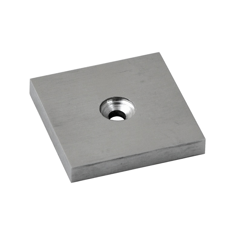 Čtvercová spodní podložka 40 x 40 x 6 mm, otvor ø 10 / 5 mm, materiál broušená nerez K320 / AISI304.
