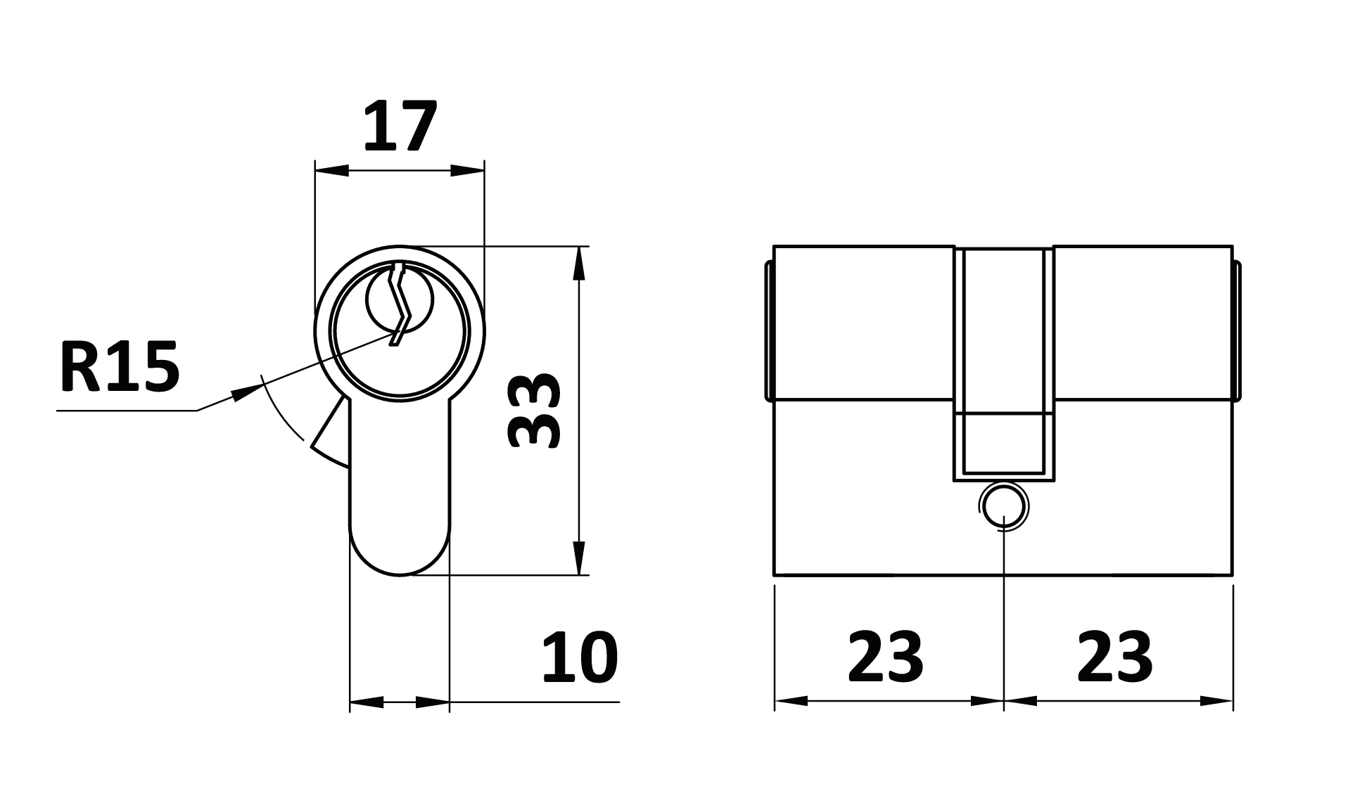 Cylindrická niklová EURO vložka LOCINOX® 23 x 23 mm, 3 klíče, šroub M5x65 mm.