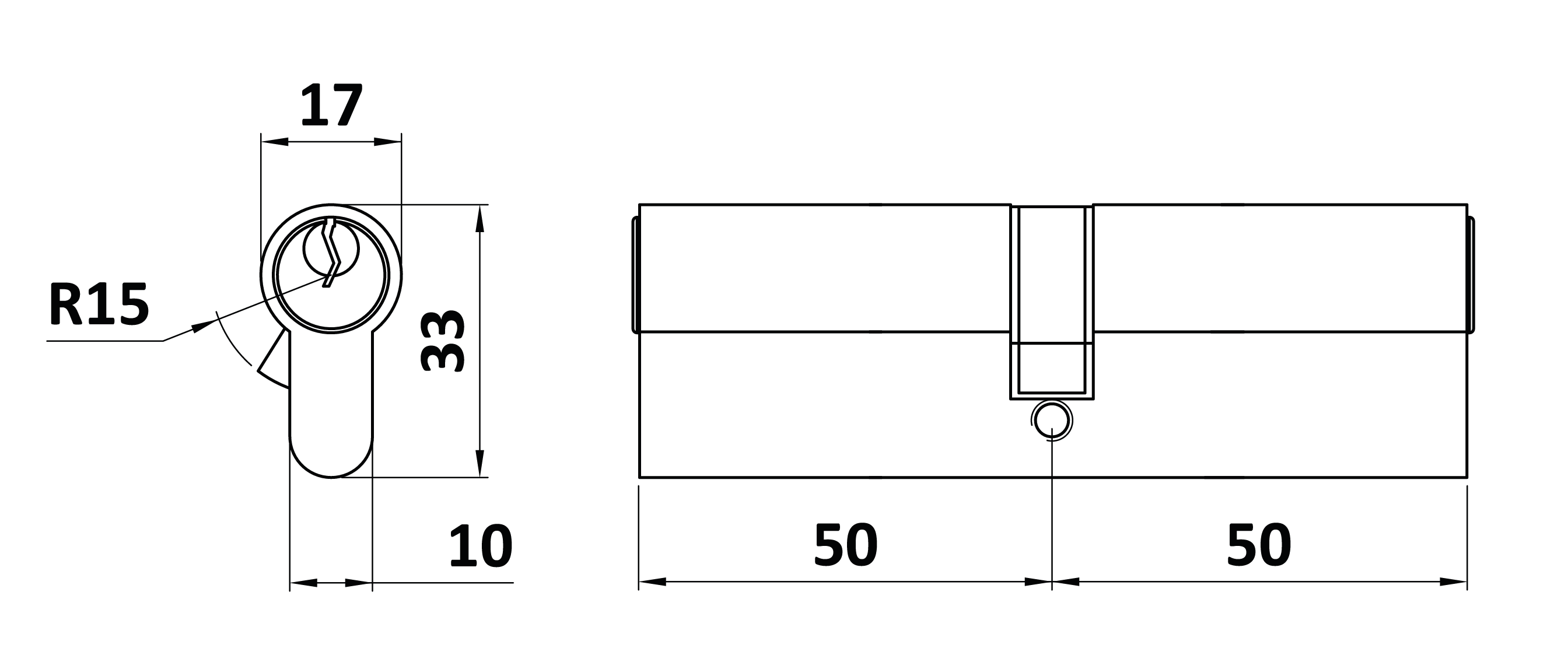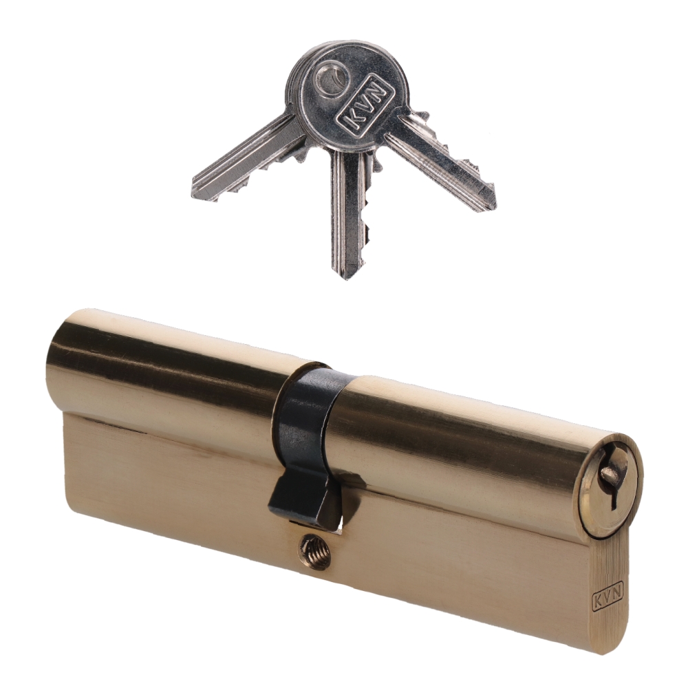 VL100 - cylindrická stavební EURO vložka 50 x 50 mm, 3 klíče, šroub M5x65 mm. Oboustranná, materiál mosaz. Celková délka 100 mm.
