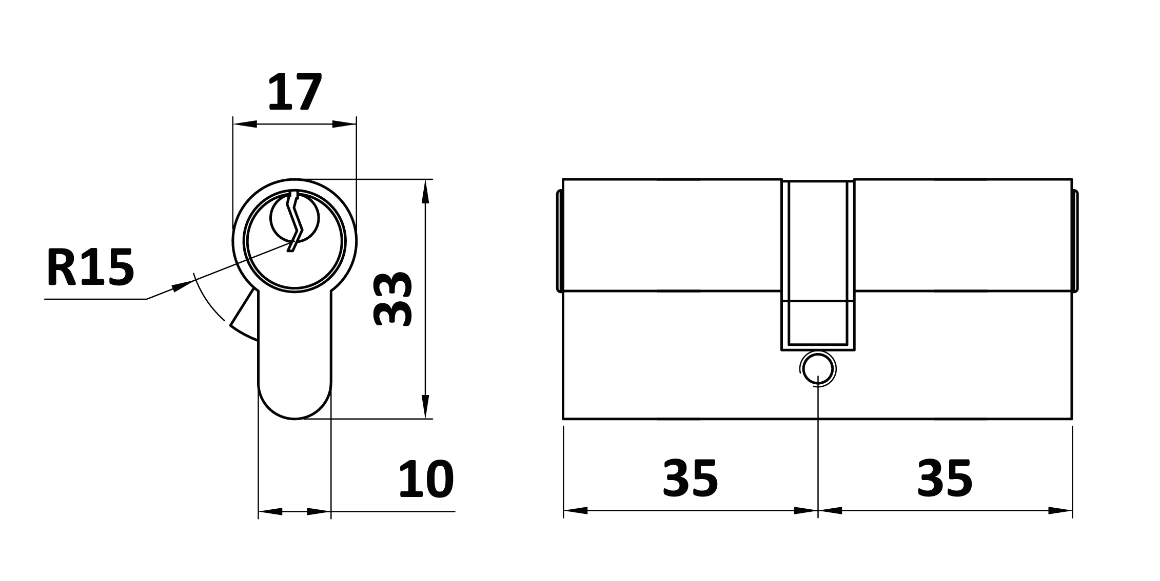 VL71 - cylindrická stavební EURO vložka 35 x 35 mm, 3 klíče, šroub M5x65 mm. Oboustranná, materiál m...Ukaž celý popis >