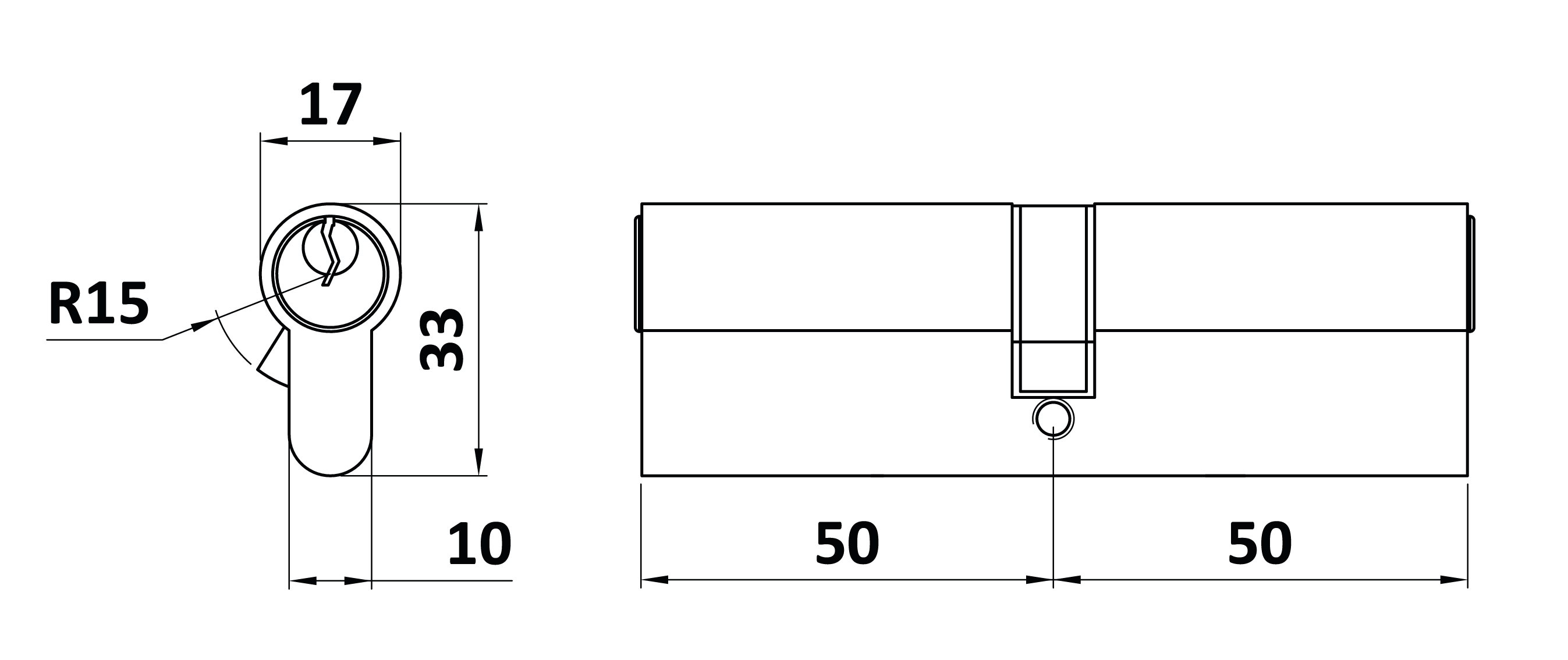 VL100N - cylindrická stavební EURO vložka 50 x 50 mm, 3 klíče, šroub M5x65 mm. Oboustranná, materiál...Ukaž celý popis >