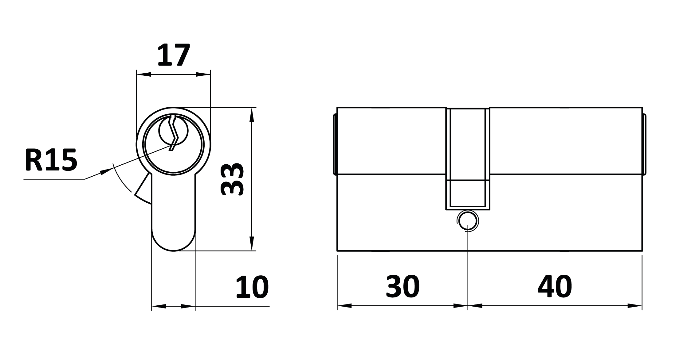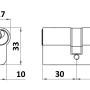 VL70 - mosazná cylindrická stavební vložka 30 x 40 mm, 3 klíče, šroub M5x65mm.