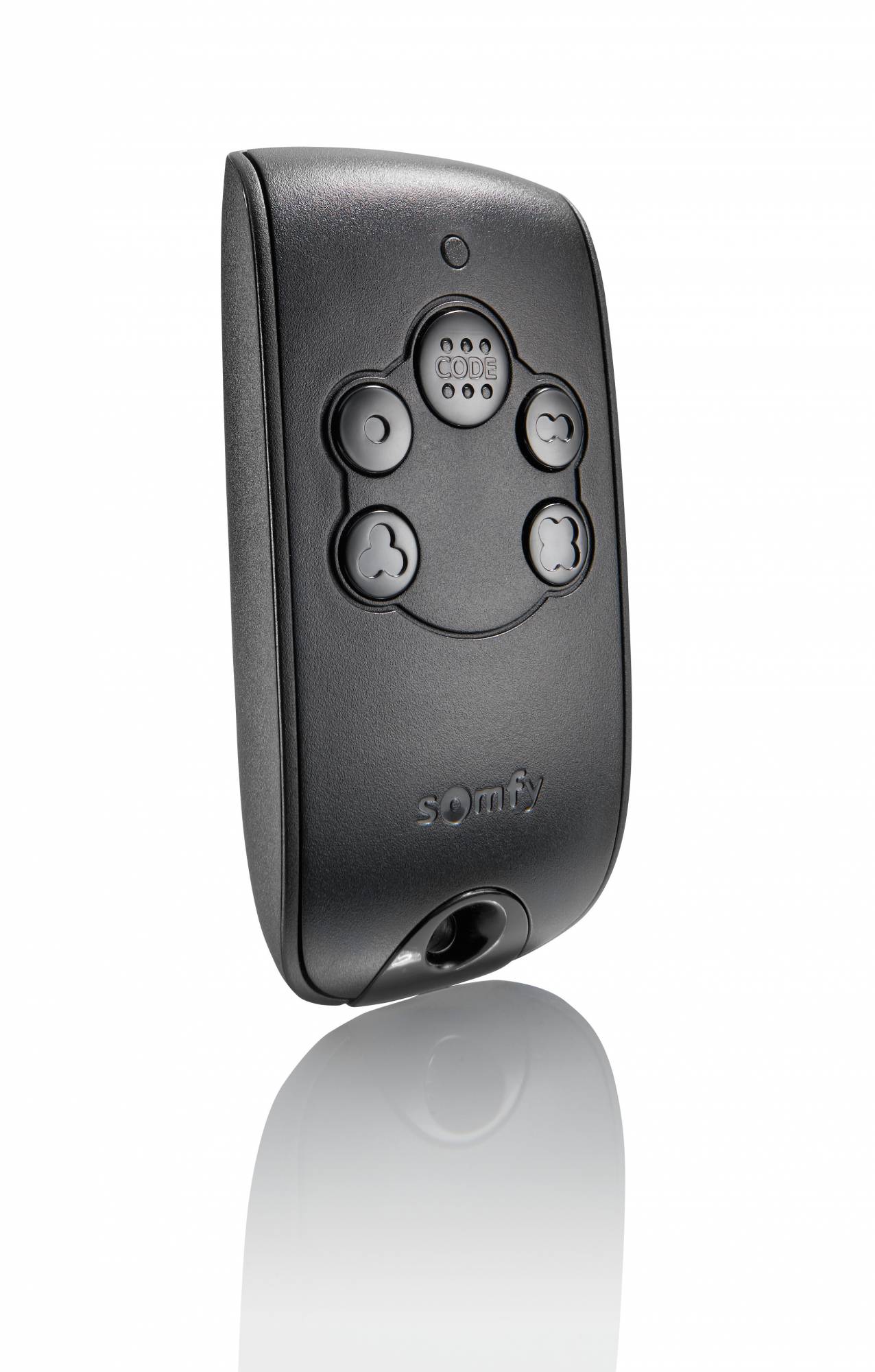 Dálkový ovladač Somfy Keytis 4 NS RTS - 4-kanálový dálkový ovladač pro pohony Somfy, frekvence 433,43 MHz, plovoucí kód, technologie RTS. Lze ovládat až 4 zařízení. Barva černá. Dosah až 30 m (závisí na okolním prostředí). Rozměry 69 x 41,5 x 13,7 mm. Dodáváno včetně lithiové baterie 2032 (2430).