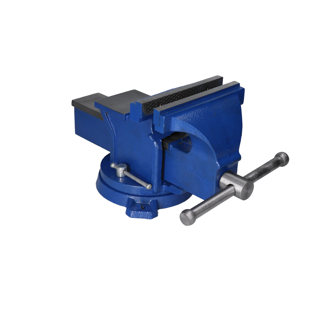 Masivní ocelový svěrák s kovadlinou, otočná základna s rotací 360°, šířka čelistí 150 mm. Vyměnitelné čelisti.