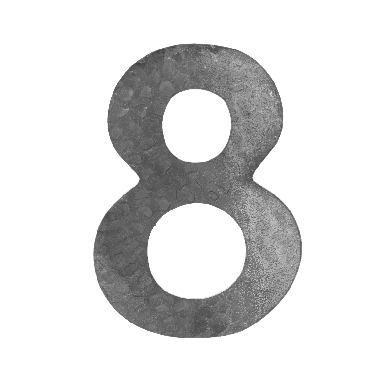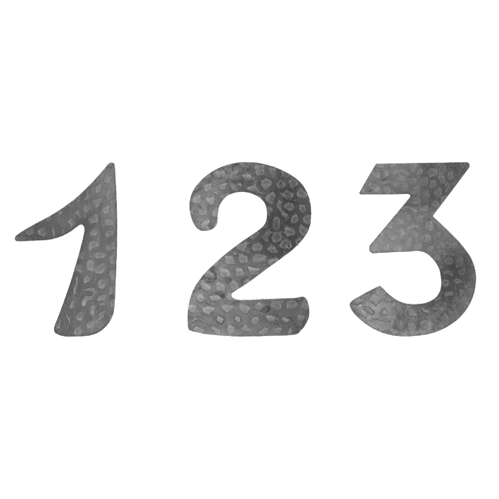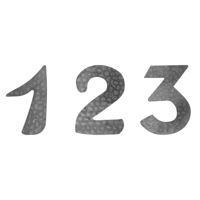 Domovní čísla 0 - 9, rozměr 120 x 80 x 3 mm, kovaná, zdobená. Dodáváme bez povrchové úpravy.