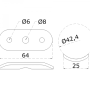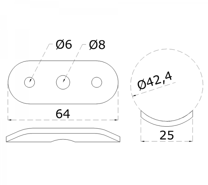 EB1-4428 - držák madla - rovná dopojovací destička pro madlo ø 42,4 mm, délka 64 mm, šířka 25 mm, materiál broušená nerez K320/AISI304.