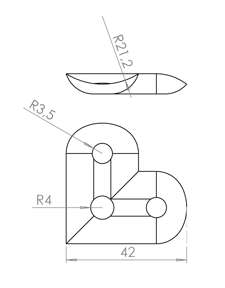 Držák madla - rohová dopojovací destička pro madlo ø 42,4 mm, úhel 90°, materiál broušená nerez K320/AISI316.