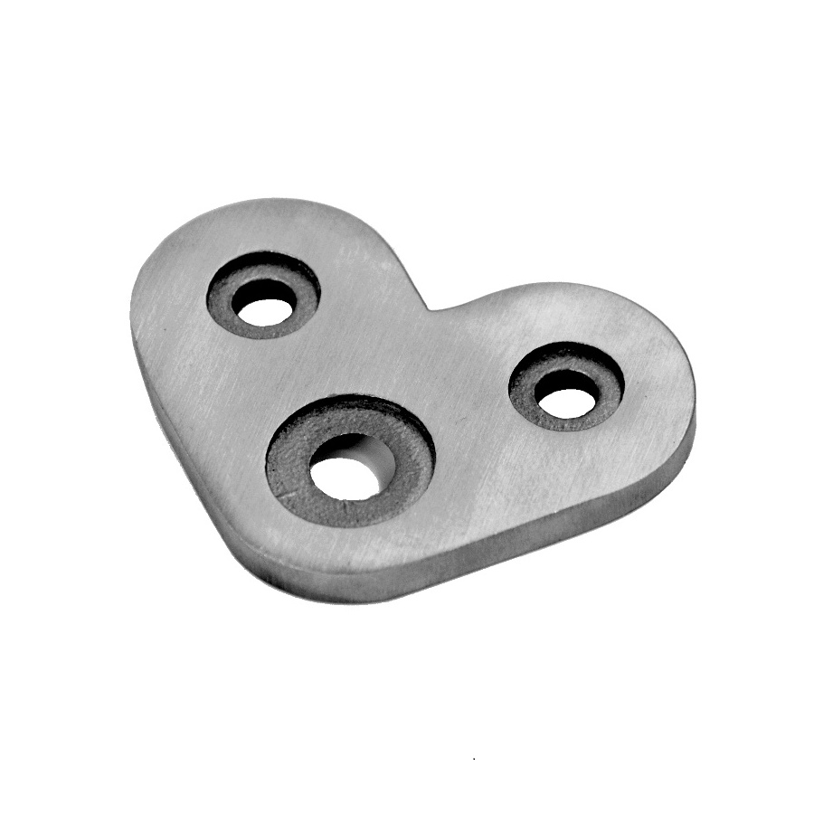 Držák madla - rohová dopojovací plochá destička. Úhel 90°. Materiál broušená nerez K320/AISI304.