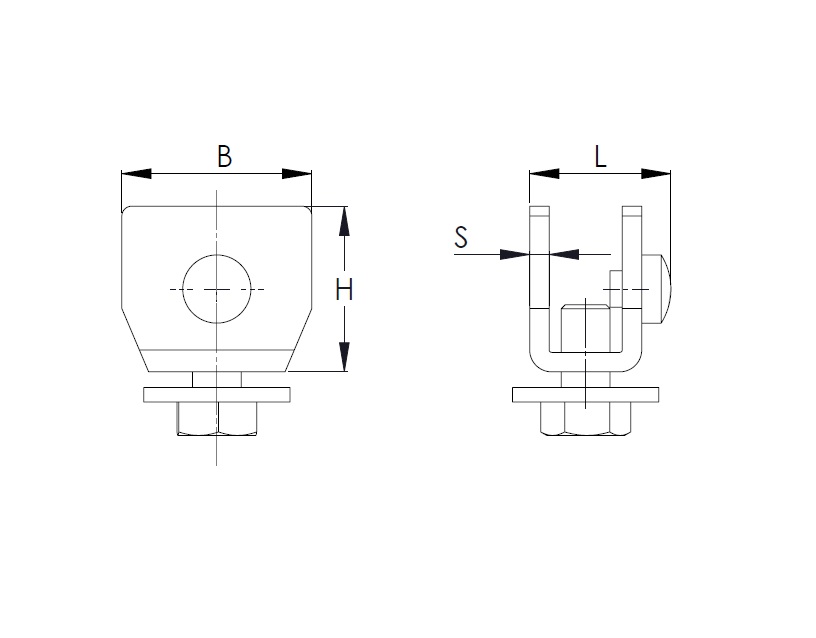 Technické údaje: B = 25 mm, H = 23 mm, L = 25 mm, s = 2 mm
