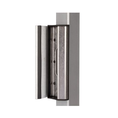 LOCINOX® SAKL QF - nastavitelná dorazová lišta z nerezavějící oceli pro křídlové branky se spolehlivým mechanismem uzamykání. Hliníkový doraz s gumou zajišťuje tiché zavírání.