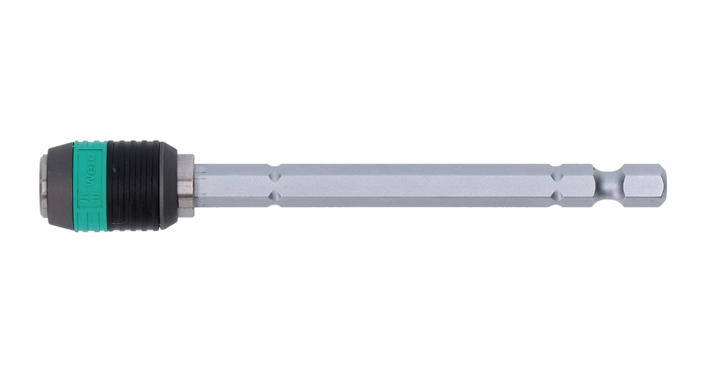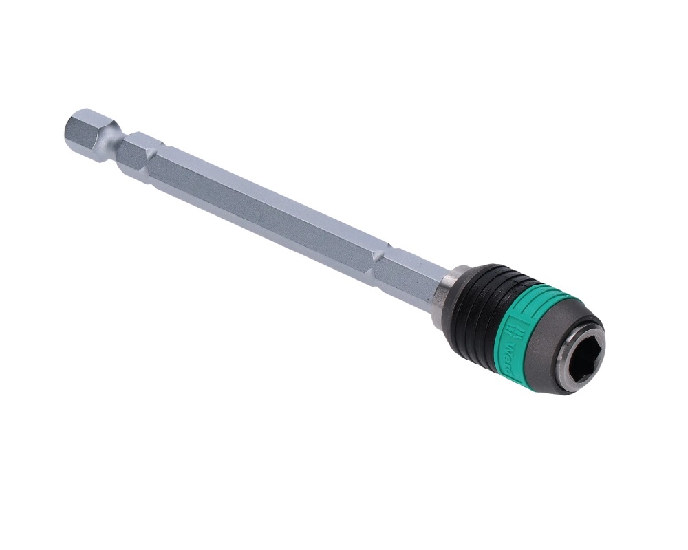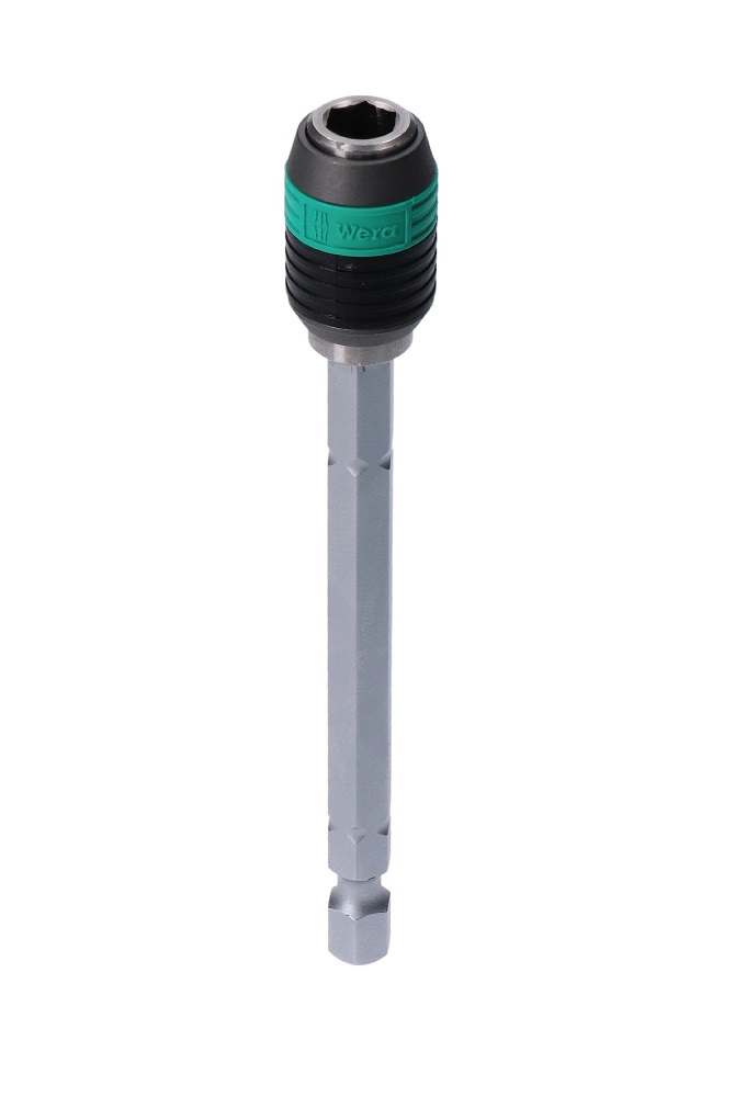 Držák bitů Wera Rapidaptor, magnet, pouzdro z nerezu, délka 100 mm. Rapidaptor umožňuje upnutí bitů i bez manipulace s pouzdrem. Vyjmutí bitu se provádí jednoduchým posunutím směrem dopředu – pro bleskovou výměnu bitů, také jen jednou rukou. Silný permanentní magnet drží bity velmi pevně.