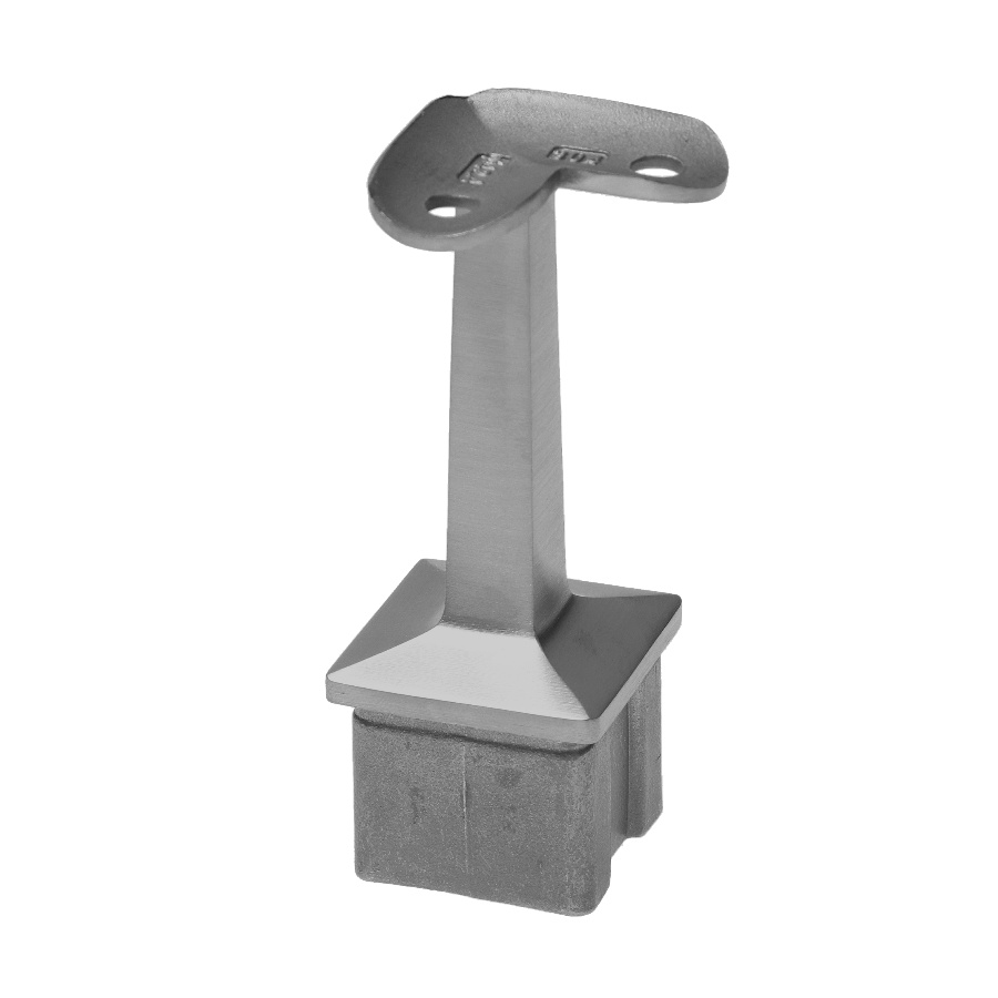 Držák madla hranatý pevný na sloupek 40 x 40 x 2 mm, deska pro madlo ø 42.4 mm, bez nastavení sklonu, materiál broušená nerez K320/AISI304.