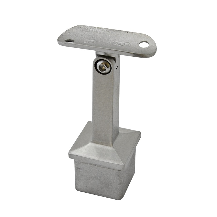 EB1-J403 - držák madla narážecí na sloupek 40 x 40 mm s kloubem pro nastavení sklonu, šířka 64 mm, výška 81 mm, deska pro madlo ø 42,4 mm, materiál broušená nerez K320/AISI304.