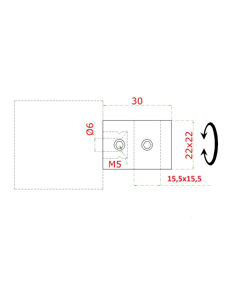 EB1-SJ15 - nerezový úchyt - přechodový držák výplně - tyče 15 x 15 mm, rozměr 30 x 22 x 22 mm, ploch...Ukaž celý popis >