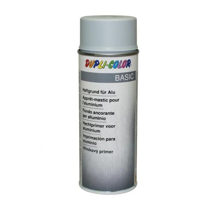 Dupli Color základní barva na hliník - speciální základní nátěr určený pro hliníkové povrchy, vyrobený na bázi speciální akrylátové pryskyřice. Zlepšuje přilnavost mezi podkladem a vrchním lakem. Omezeně je vhodný také pro zinek a měď, pokud jsou následně přelakovány. Lze jej použít s akrylátovými, nitro-kombinačními nebo syntetickými laky schnoucími na vzduchu.