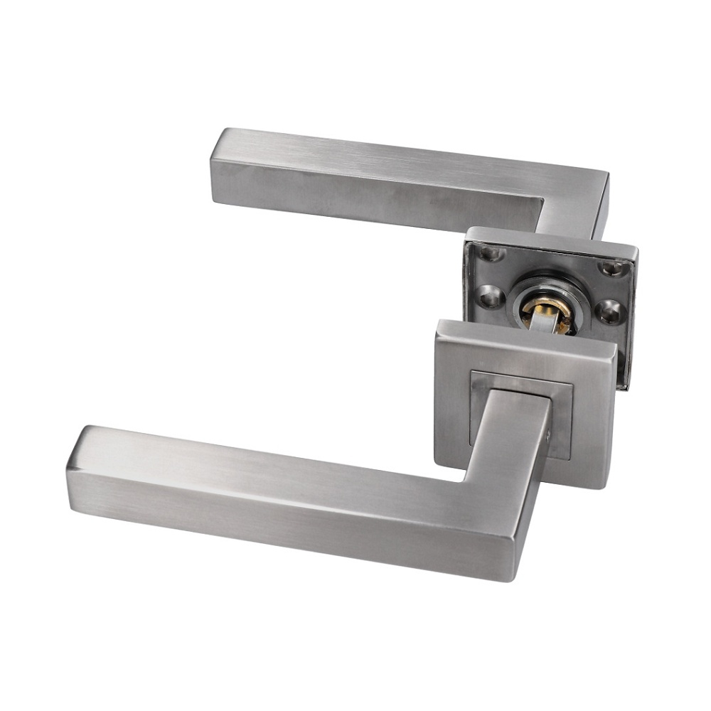 EB1-JKLD84N - nerezová dveřní klika, 1 pár, broušená nerez K320/AISI304. Vhodné i do venkovního prostředí.