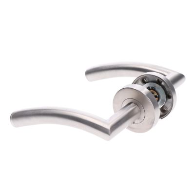 EB1-KLD06N - nerezová dveřní klika, 1 pár, broušená nerez K320/AISI304. Vhodné i do venkovního prostředí.