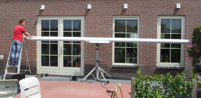 UPTER KSF CM 520 - přenosný teleskopický zvedák (výtah) je určený pro firmy, která se zabývají montáží markýz, venkovních žaluzií, rolet, klimatizací, světelných reklam, potrubí, vzduchotechniky apod. Tento elektrický přenosný zvedák usnadní práci a urychlí instalaci.