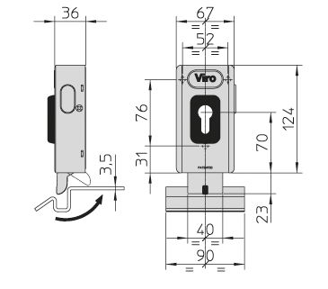 elektrozámek pro křídlovou bránu, vertikální montáž