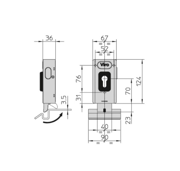 Zámek má kompaktní rozměry a dobře se hodí pro horizontální montáž. Vzdálenost backset je 70 mm. Zdvojené vyměnitelné el. magnetické cívky rovnoměrně rozdělují namáhání a tím se prodlužuje jejich životnost.