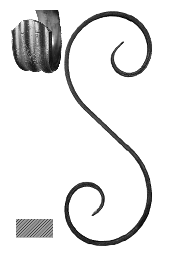 KC033 - element tvaru "S" - esko kované 380 x 120 mm, profil 14 x 6 mm, základní rozkování.