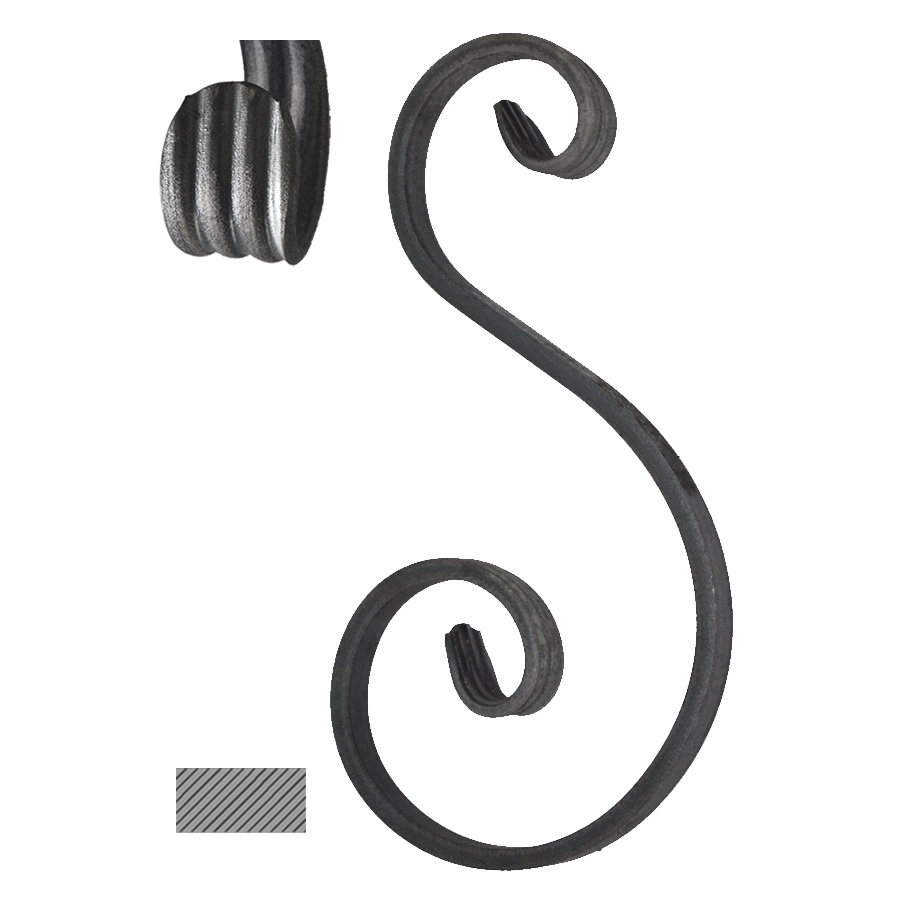 KC030AH - element tvaru "S" - esko kované 260 x 120 x 70 mm, hladký profil 12 x 6 mm, široké rozkování.