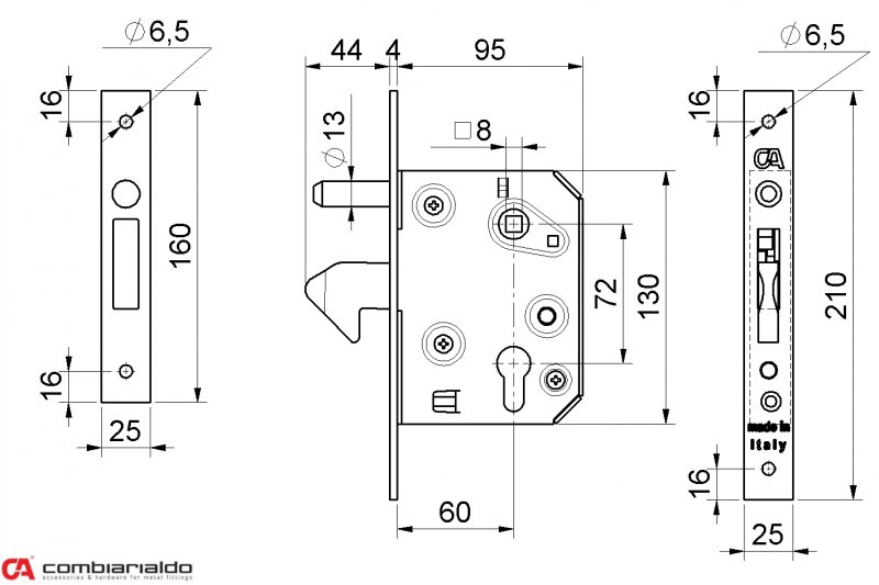 C351 - hákový zámek pro ručně otevírané posuvné brány od předního italského výrobce Combi Arialdo. Rozteč 72 mm, hloubka zádlabu 95 mm, bezpečnostní trn proti přizvednutí brány, povrchová úprava pozink. Bez vložky. Kombinace s krytem C354.