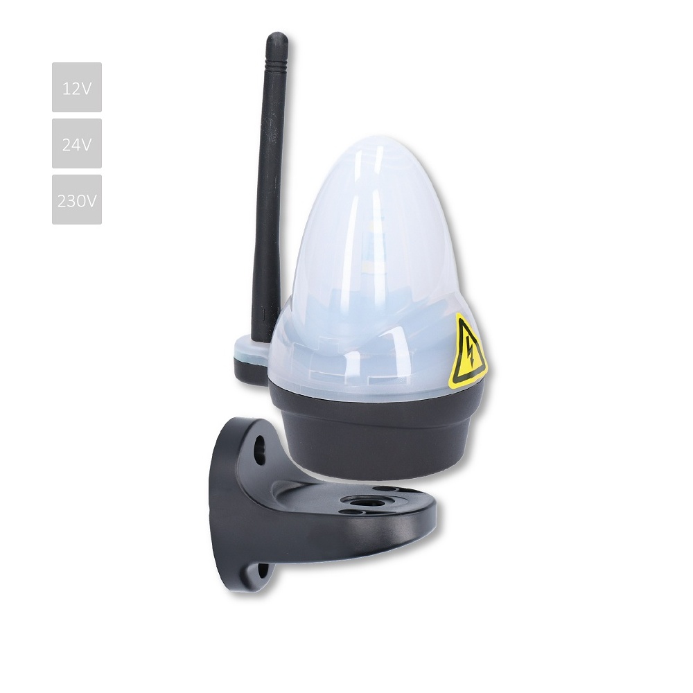 HFL6W - bílé výstražné LED světlo s anténou, držák pro boční uchycení, napájení 12, 24 nebo 230V, ro...Ukaž celý popis >